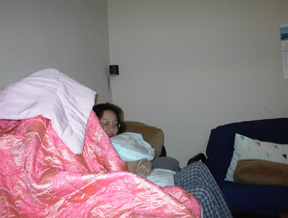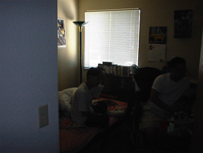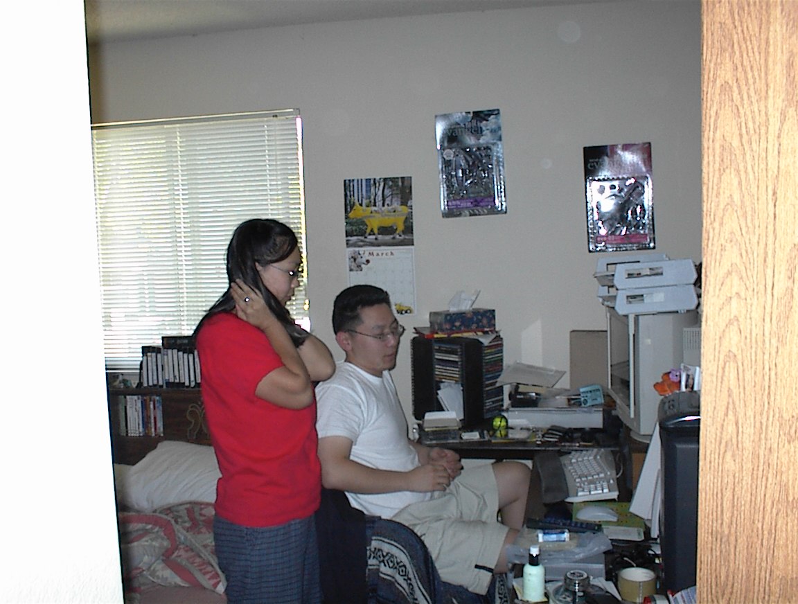 Anyway, I unpacked the camera and came downstairs. My first victims were Marah and Yakko, who were caught completely by surprise. They're probably going to petition me to take this picture down immediately, so we'll see how much bribe money they'll offer.